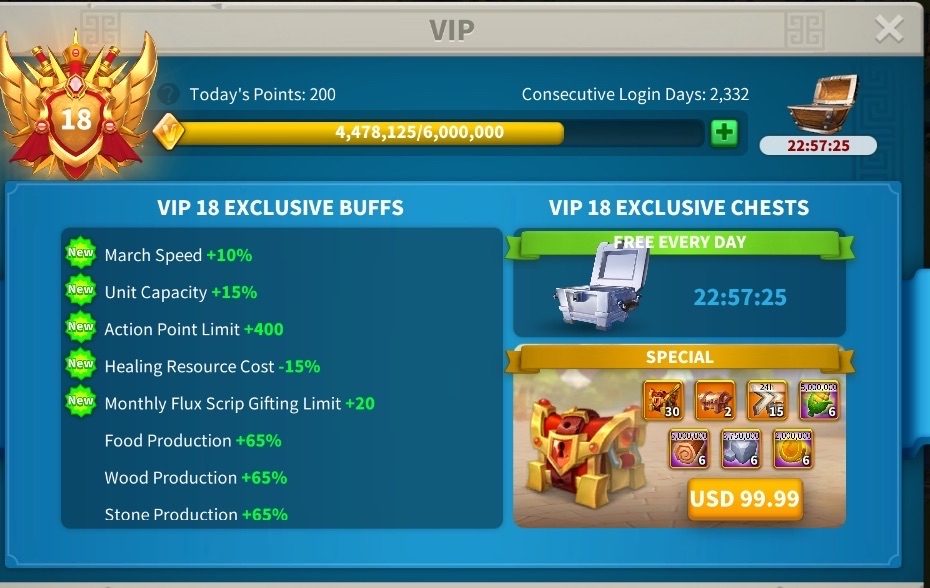 • VIP18 ( 4m4 point). Rise of Kingdoms.