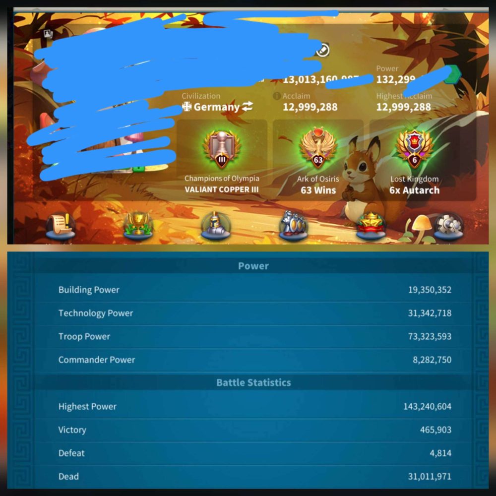 Rise of Kingdoms. 144 Million power. 51 Billion kills and 156 Million dead troops. 12 800 USD + our Fee