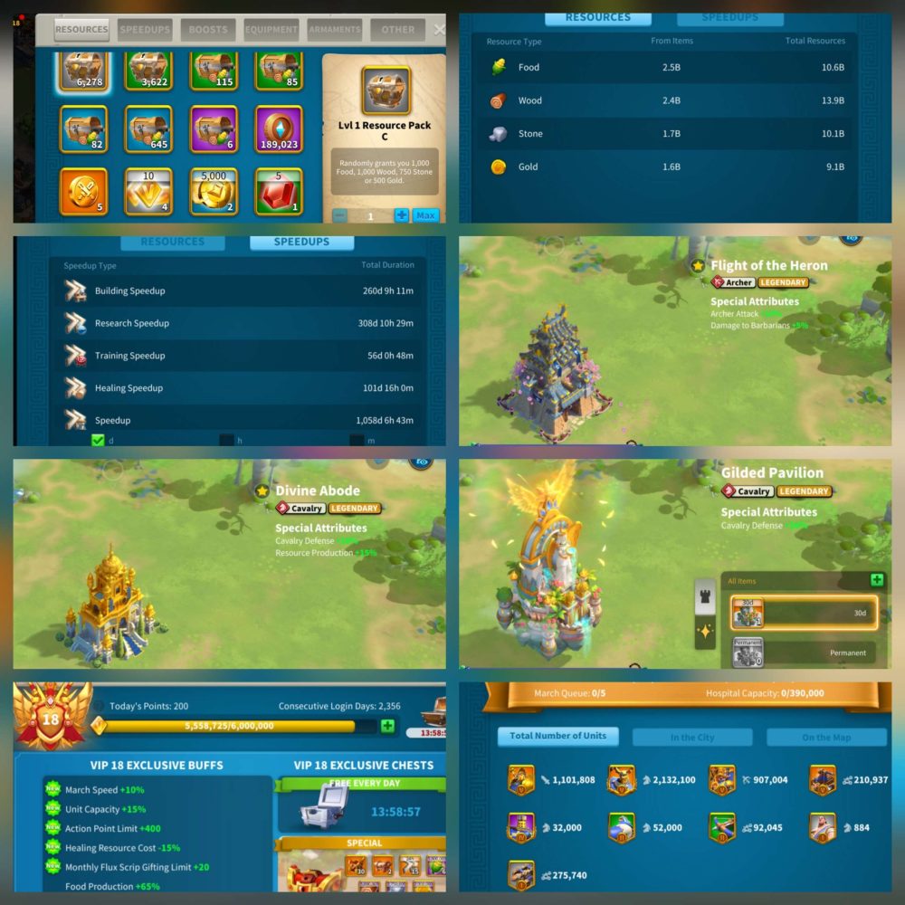 - 5 full legendary set + more;