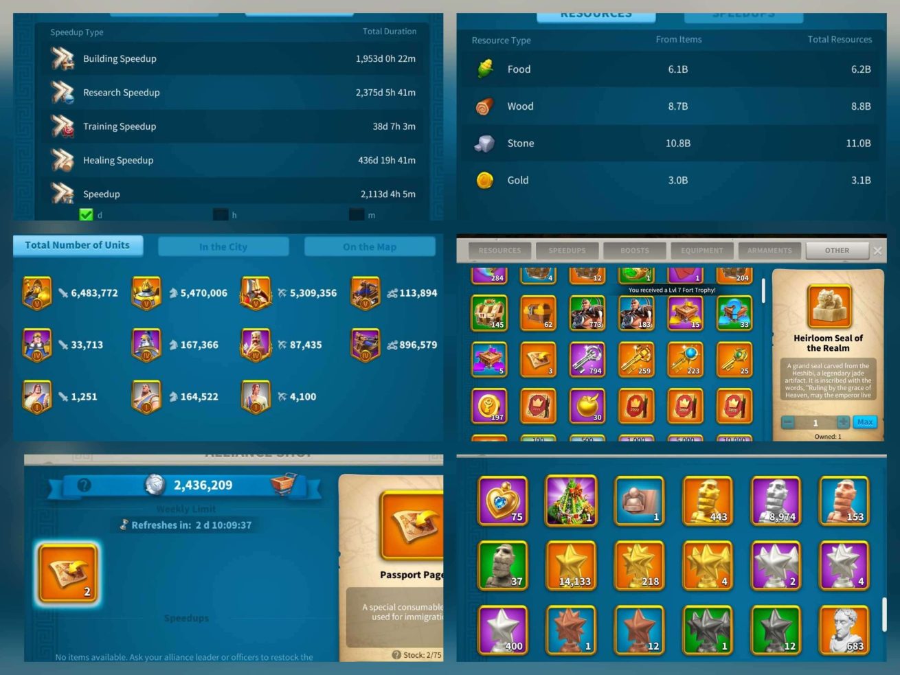 - 5.8 years+ universal speedups. 1 million+ gems, 11 Million+ VIP points.