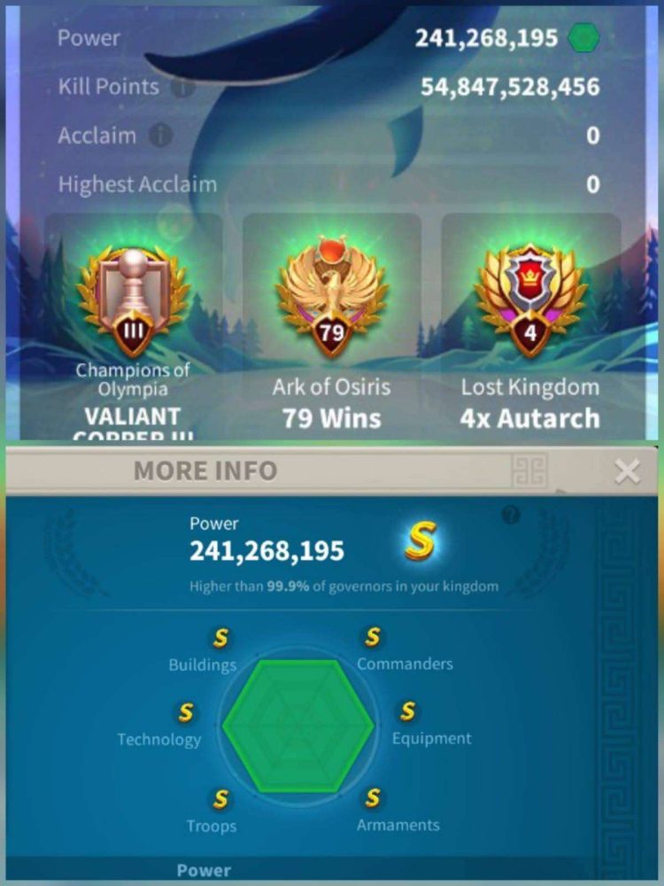 - 241 million power, 54 Billion kills and 110 Million dead troops