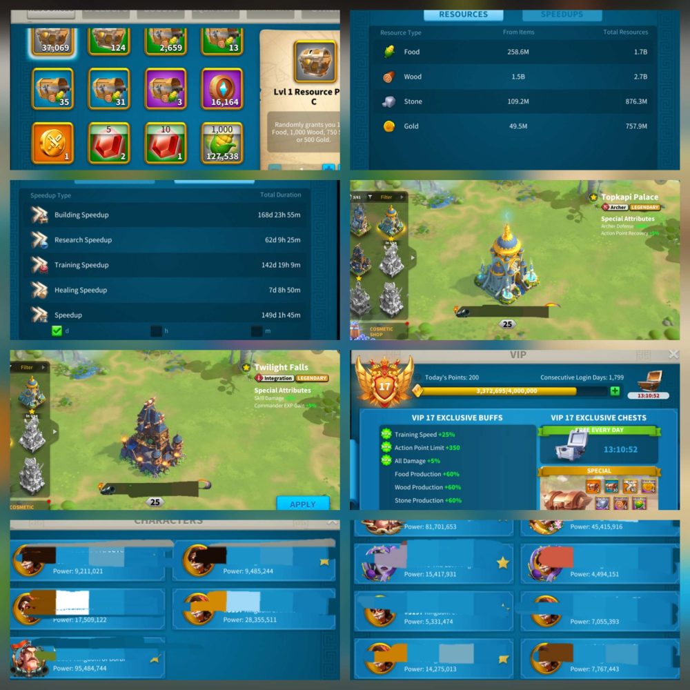 - 6 full legendary set, 12 Billion kills, 12 alt account